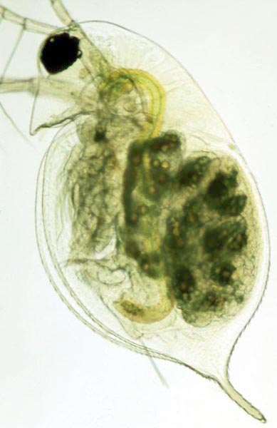 Yellowish forms in little ponds, transparent in larger lakes, planktonic.