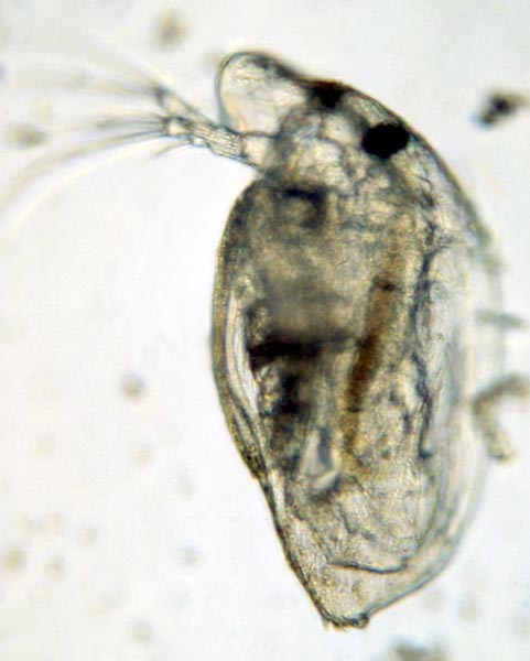 Lower carapax corner with 3 tooth-like structures. Valves grey to yellowish. Gut without loop.