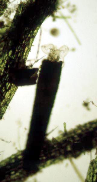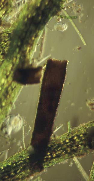 1000 µm, Specimen of Myriophyllum. The sensitive specimen first came again out after I had waited for a while. |
