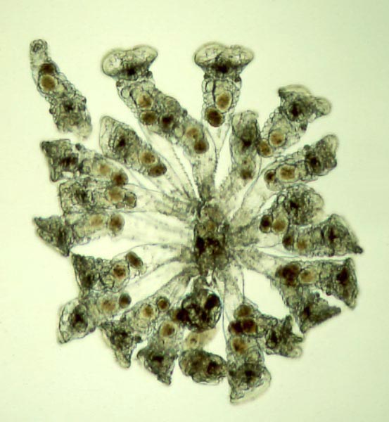 920 µm in diameter. Individuals 380-460 µm, contracted 200 µm. Detail of a few individuals. This capture published in "Integrative Animal Biology" (Fig. 3.27C). |