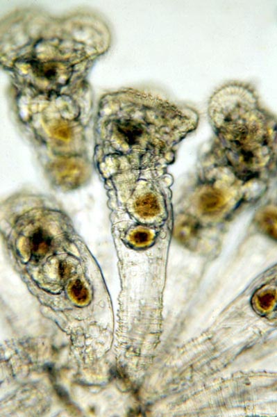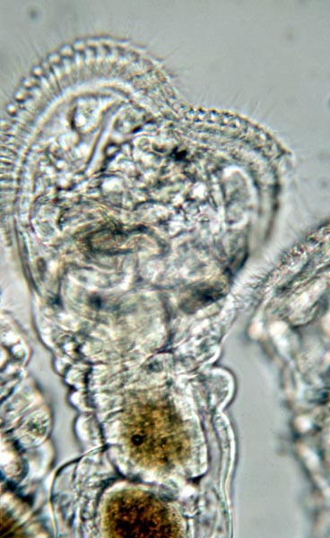 920 µm in diameter. Individuals 380-460 µm, contracted 200 µm. Note the nice ciliar apparatus. |